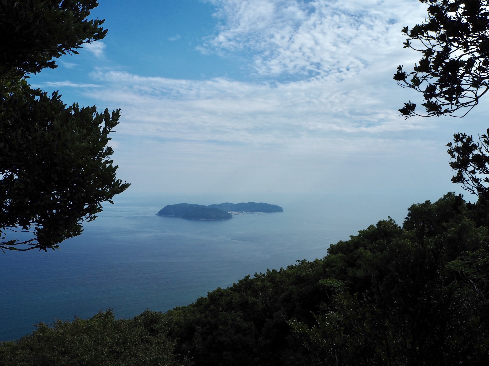 諭鶴羽神社に行く途中の山道から見た沼島です。